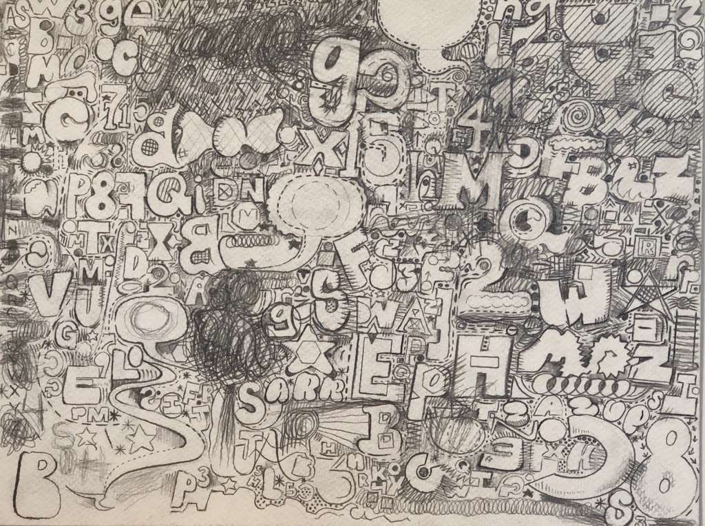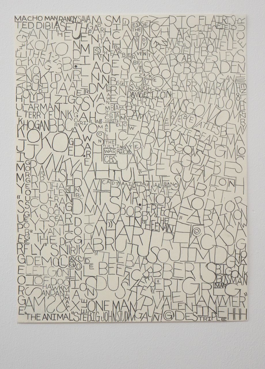 I have three touchstones for this work: paul klee's beginning of a poem (1938), claes oldenburg oldenburg and patty mucha's soft calendar for the month of August (1962) and the pinball number count videos on sesame street (1-2-3-4-5-6-7-8-9-10-11-12") jasper johns might be an influence with the number and alphabet letter paintings, except for the stencils. One of my life pursuits is to develop a quality handstyle. I always find myself stuck in traffic and spacing out, looking at graffiti and billboards and various signage. I think about how the visual environment permeates the mind, how even though you might not be interested in graffiti or commercial signage, those end up mixing around in your brain just because it's everywhere, and then it comes out in the painting. i'm interested in the space where a painting navigates both internal and external landscape, where the tension between a hand and eye, with all its friction and awkwardness, becomes the terrain of exploration.